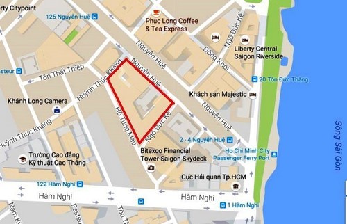Nằm bên cạnh tháp Bitexco, trung tâm văn phòng Sunwah, đối diện tòa nhà Times Square là khu đất tứ giác vàng mặt tiền phố đi bộ Nguyễn Huệ - đường Hồ Tùng Mậu - Huỳnh Thúc Kháng - Ngô Đức Kế (quận 1).